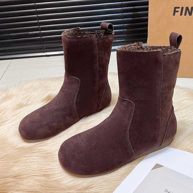 Winter Boots Toe Cow Suede Matte Leather Artificial Short Plush Flat Snow Boots Low Heels (Less 3cm) Thermal Waterproof Features