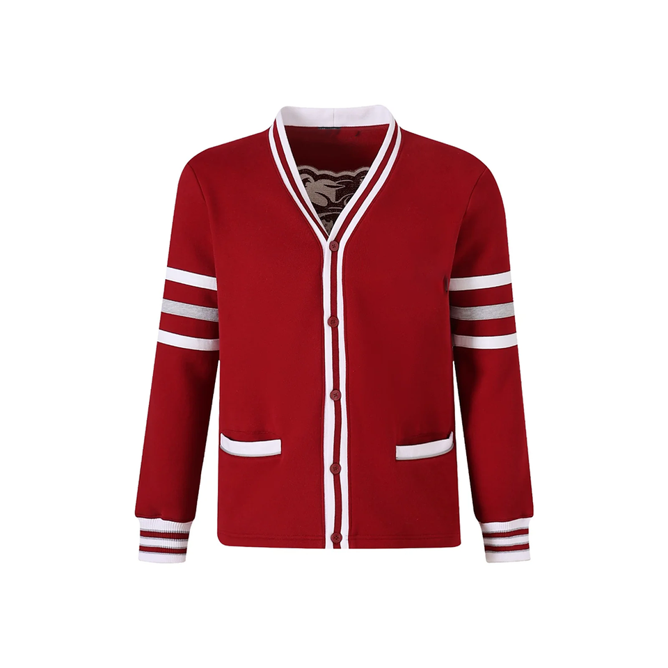 Winter Casual Alabama A&M Maroon Varsity Cardigan V-Neck Button Front Knit White Stripe Trim Classic Collegiate Layering Sweater