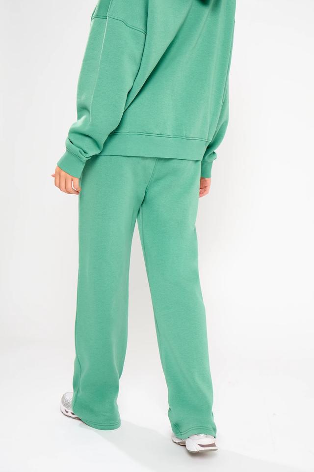 Winter Casual Oversized Hoodie Jade Green & Navy Solid Embroidered Long 2-Piece Set for Women