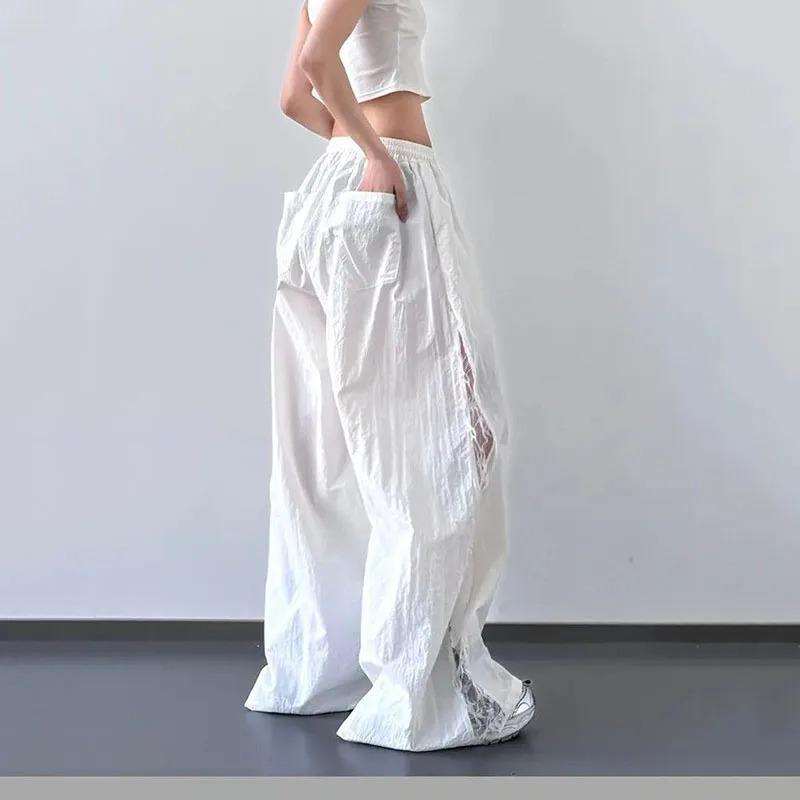 Winter Casual Women Sweatpants Elastic Waist Mid Waist Loose Fit Thermal Cotton Windproof Breathable Wide Leg Streetwear Baggy