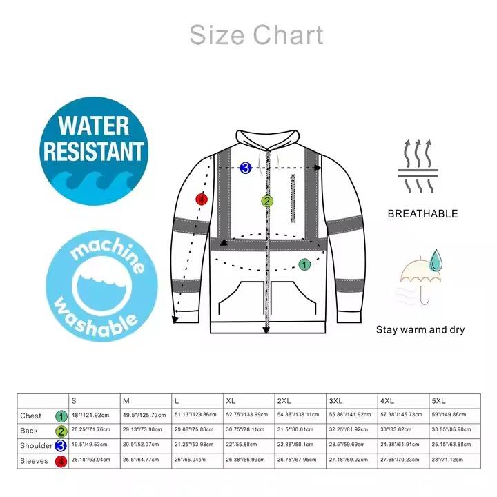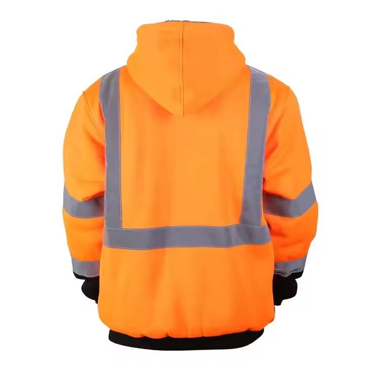 Winter Class 3 High Visibility Jacket Orange Lined Fleece Work Reflective Safety Sweatshirts