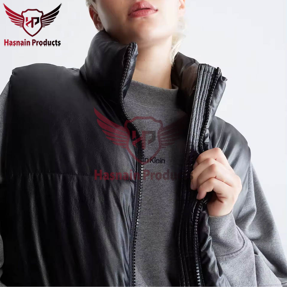 Women's Winter Fashion Woolen Leather Vest Custom Windproof Sleeveless Puffer Waistcoat for Cold Weather Trendy Outer Wear