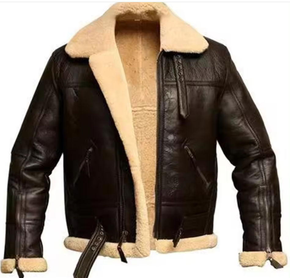 Winter Faux Fur Leather Men's Casual Thickened Pilot Warm Outdoor Plus Size Motorcycle Genuine Leather HOT Coat Men's Jacket