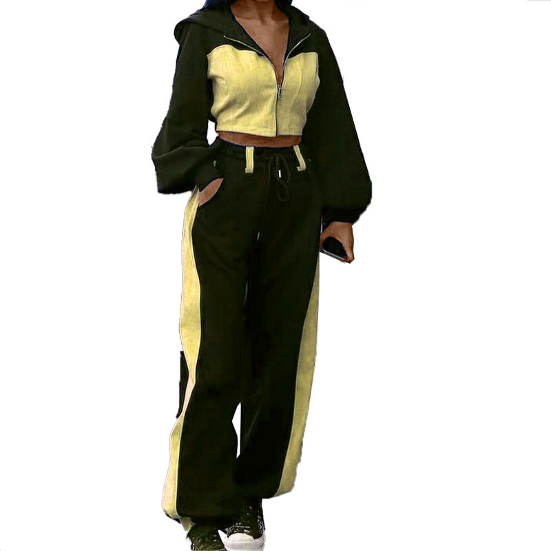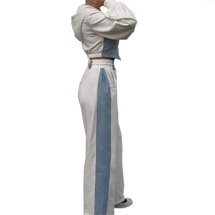 Winter Female Outfits Streetwear Patchwork Zip up Big Lapel Jacket Women Tracksuit 2Pcs Wide Pants Set Sporty Streetwear Suits