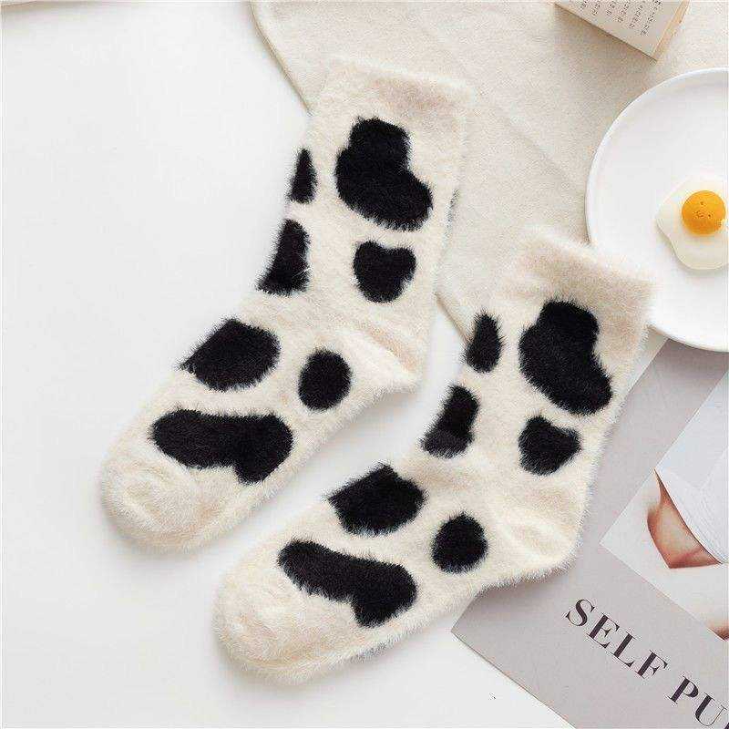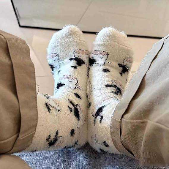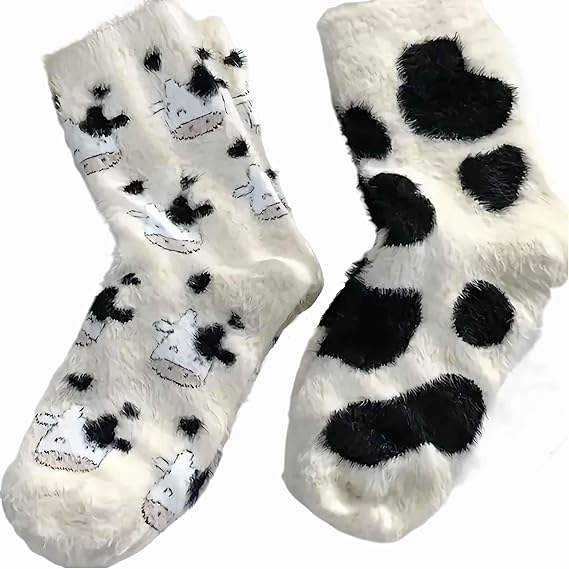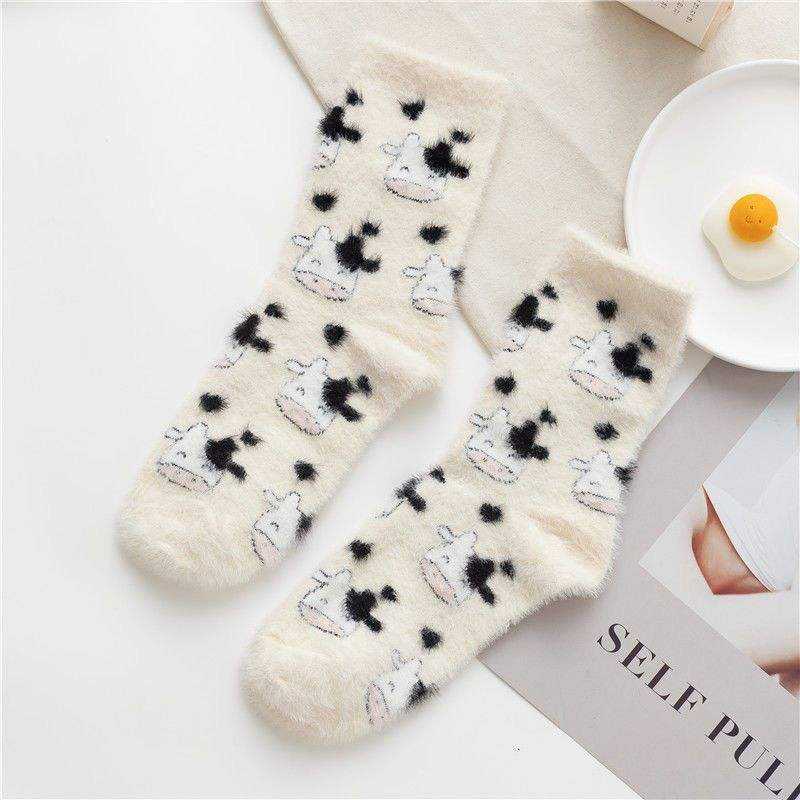 Autumn Funny Cute Cozy Fluffy Fuzzy Cartoon Themed Warm Dress Breathable Animal Cow Crew Socks for Men