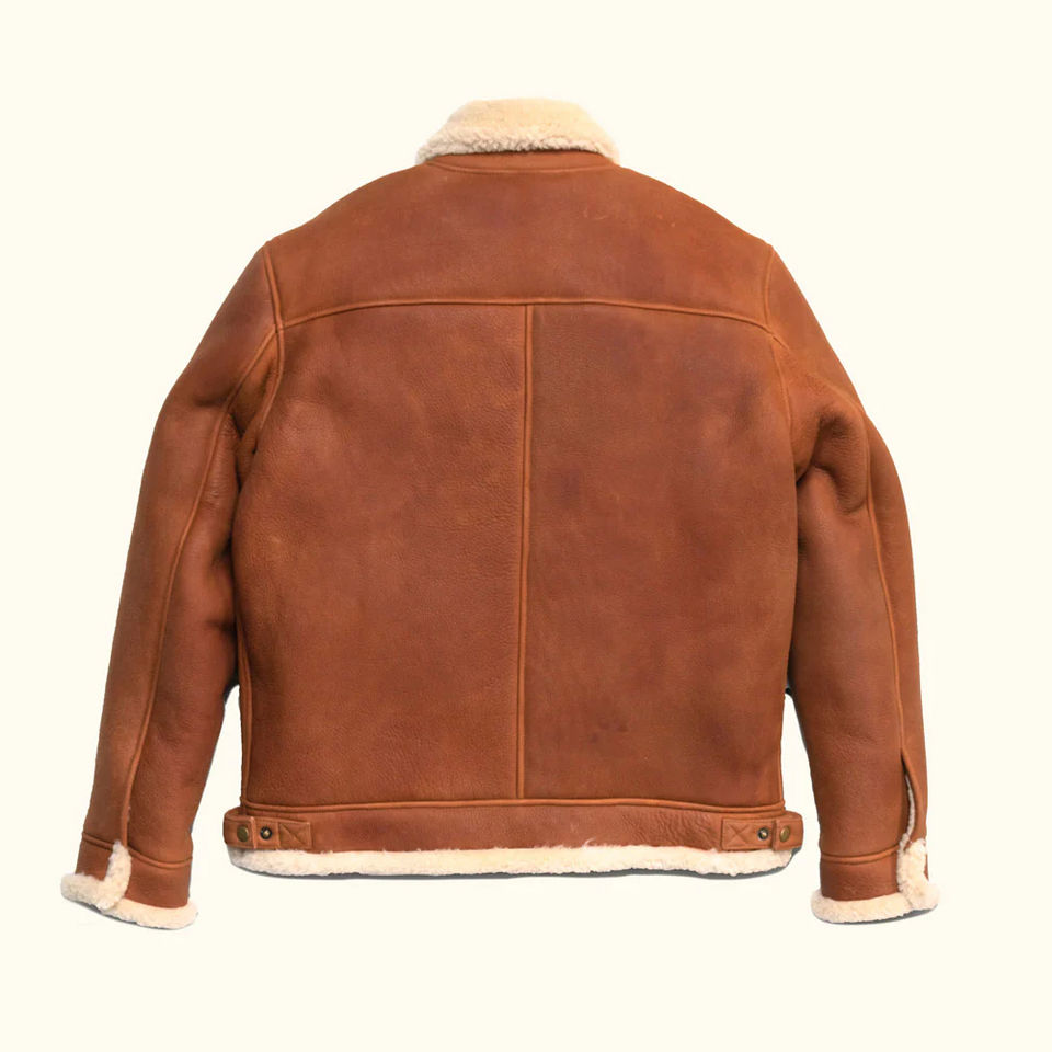 Winter Fur Genuine Leather Coat Notch Lapel Sherpa Shearling Warm Men's Leather Jacket with Fur Collar Leather Jacket