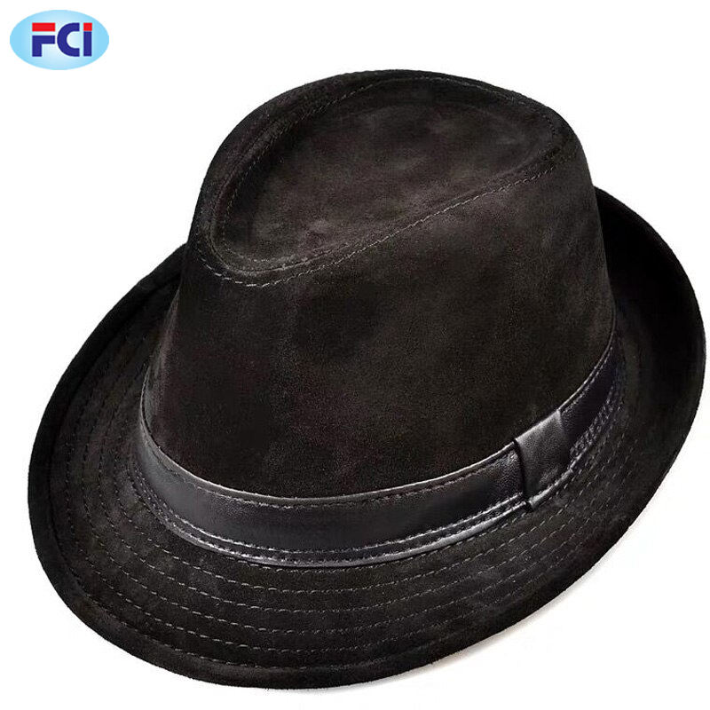 Winter Genuine Leather Top Hats for Men Women British Gentlemen Wide Brim Fitted Hats