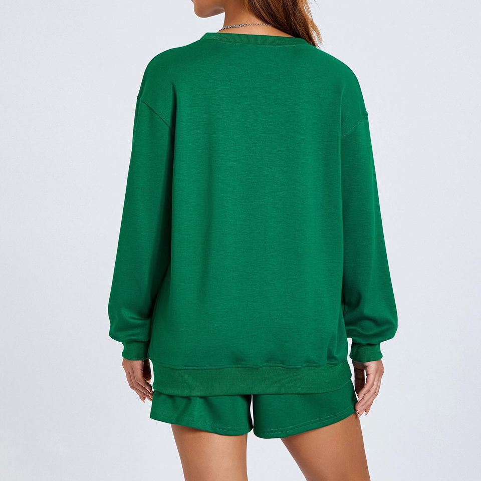 Winter Green Solid Two Piece Women's Long Crop Sweatshirt & Shorts Set Fleece Cotton Custom Oversized Cheap price OEM