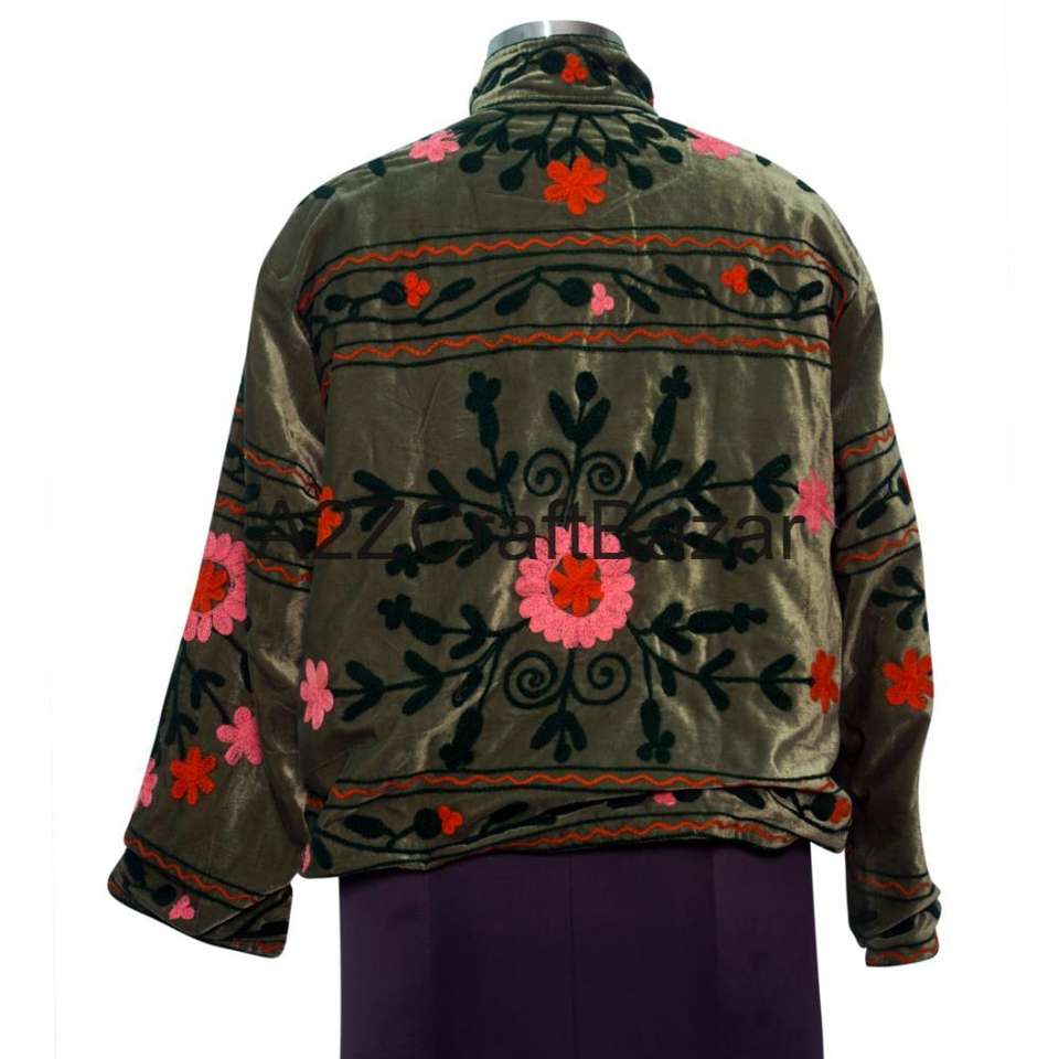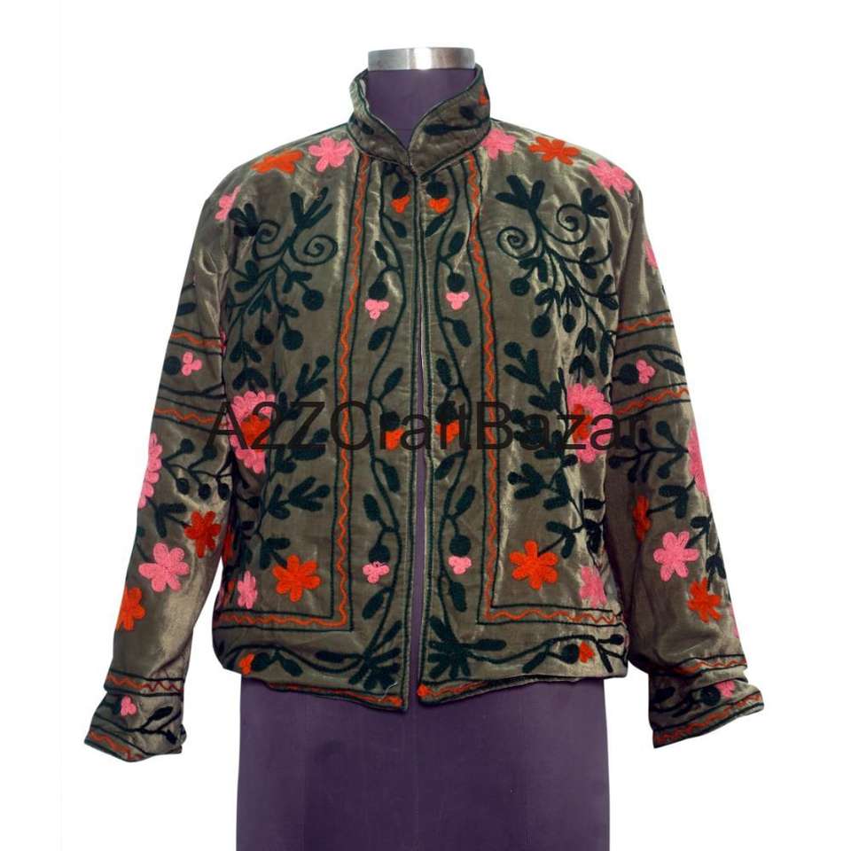 Winter Jacket Suzani Velvet Woven Embroidered Handmade 100% Cotton Khadi Multi-Colored Floral Regular Length Ethnic Gift