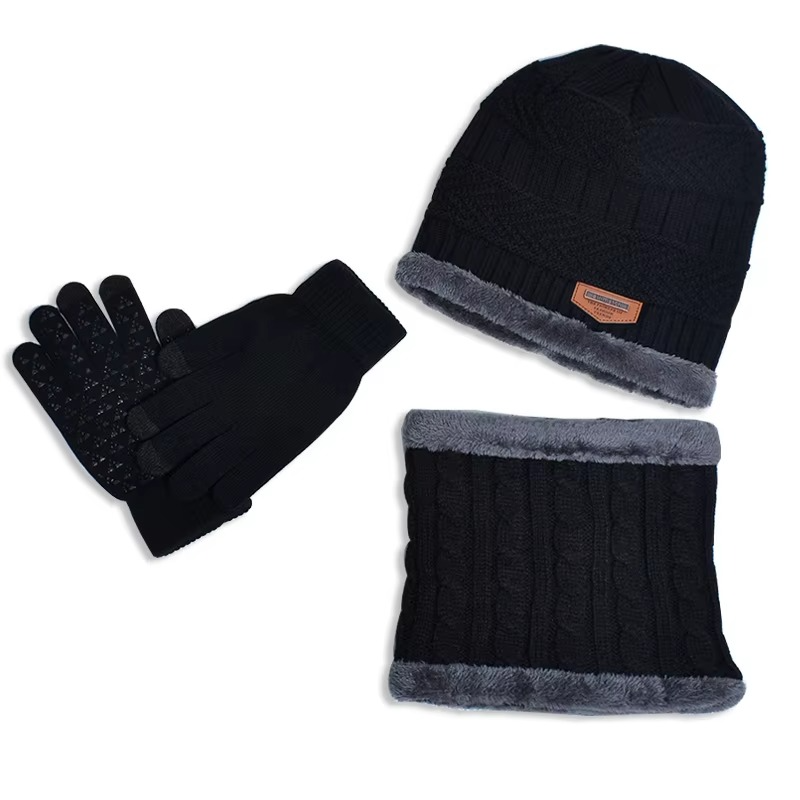 Winter Kids Knitted Hat Scarf Gloves Set 4Pcs Beanie Hats with Plush Lining & Non Slip Gloves Long Neck Warmer for Warm Children