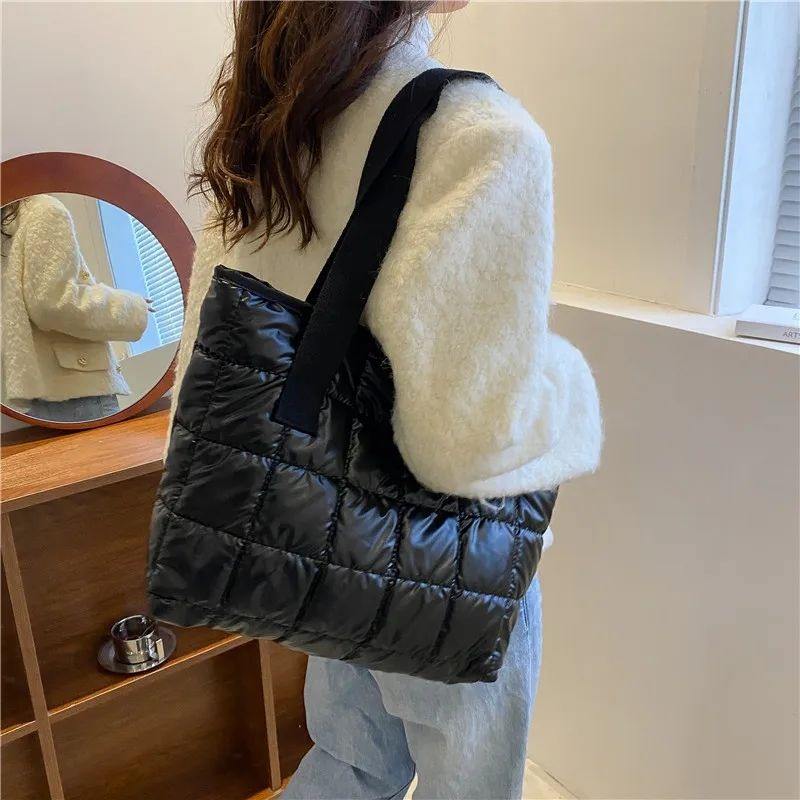 Winter Korean Space Cotton Jacket Quilted Shopper Purse Soft Large Capacity Silver Glossy Puffer Down Designer Handbag