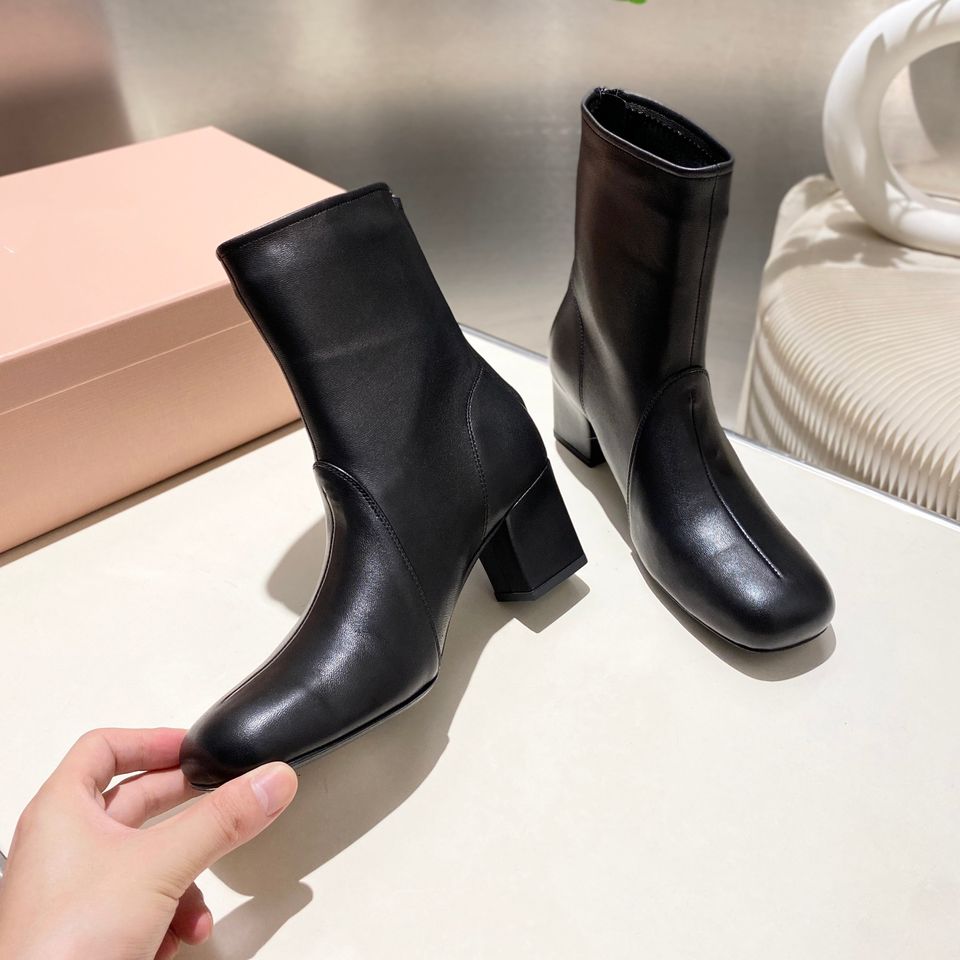 Winter Ladies Boots Shoes Classic Luxury Genuine Leather Designer Chunky High Heels Ankle Boots for Women