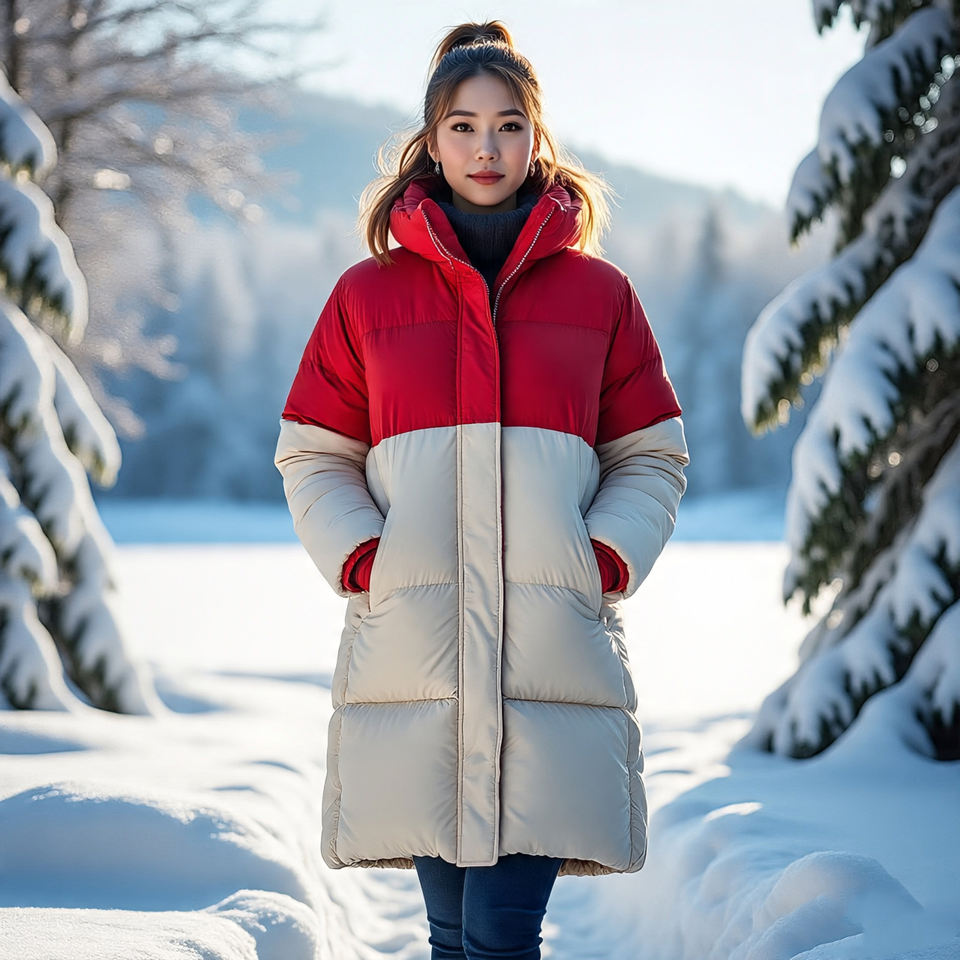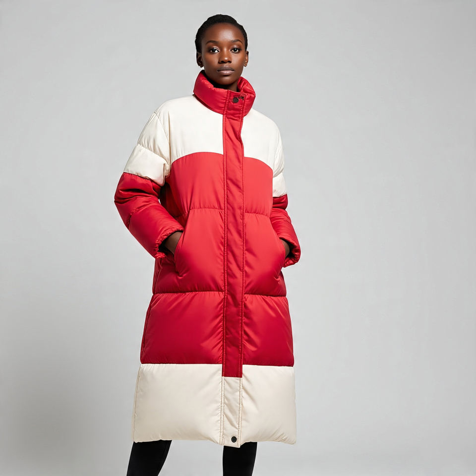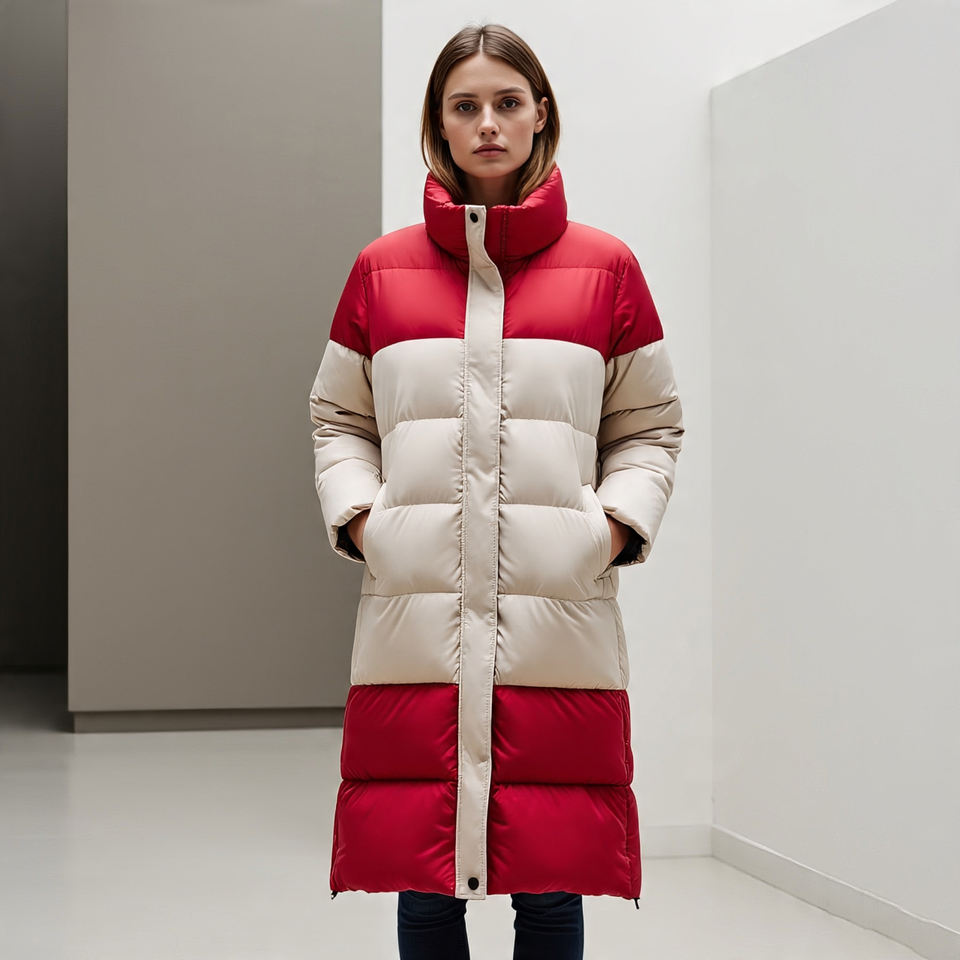 2024 Autumn Winter Long Knitted Puffer Padded Jacket Women Full Zipper Hooded Bubble Overcoat Breathable Windproof Wool Lining