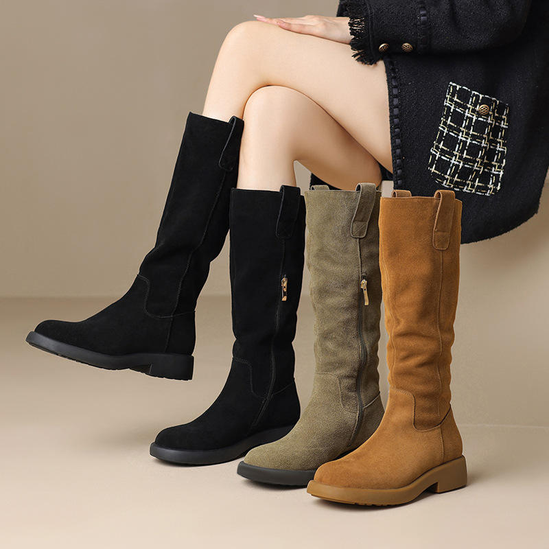 Winter Luxury Ladies Knee High Boots Made of Handcrafted Cowhide High Top Boots With Fashionable Side Zippers Knight Boots