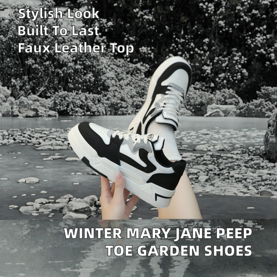 Winter Mary Jane Peep Toe Buckle Garden Shoes for Women Trendy Design Synthetic Leather Upper PVC Lining