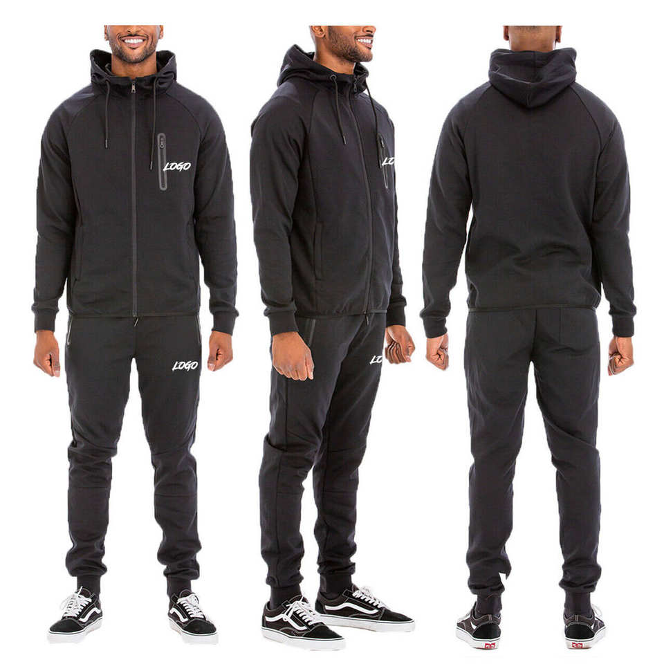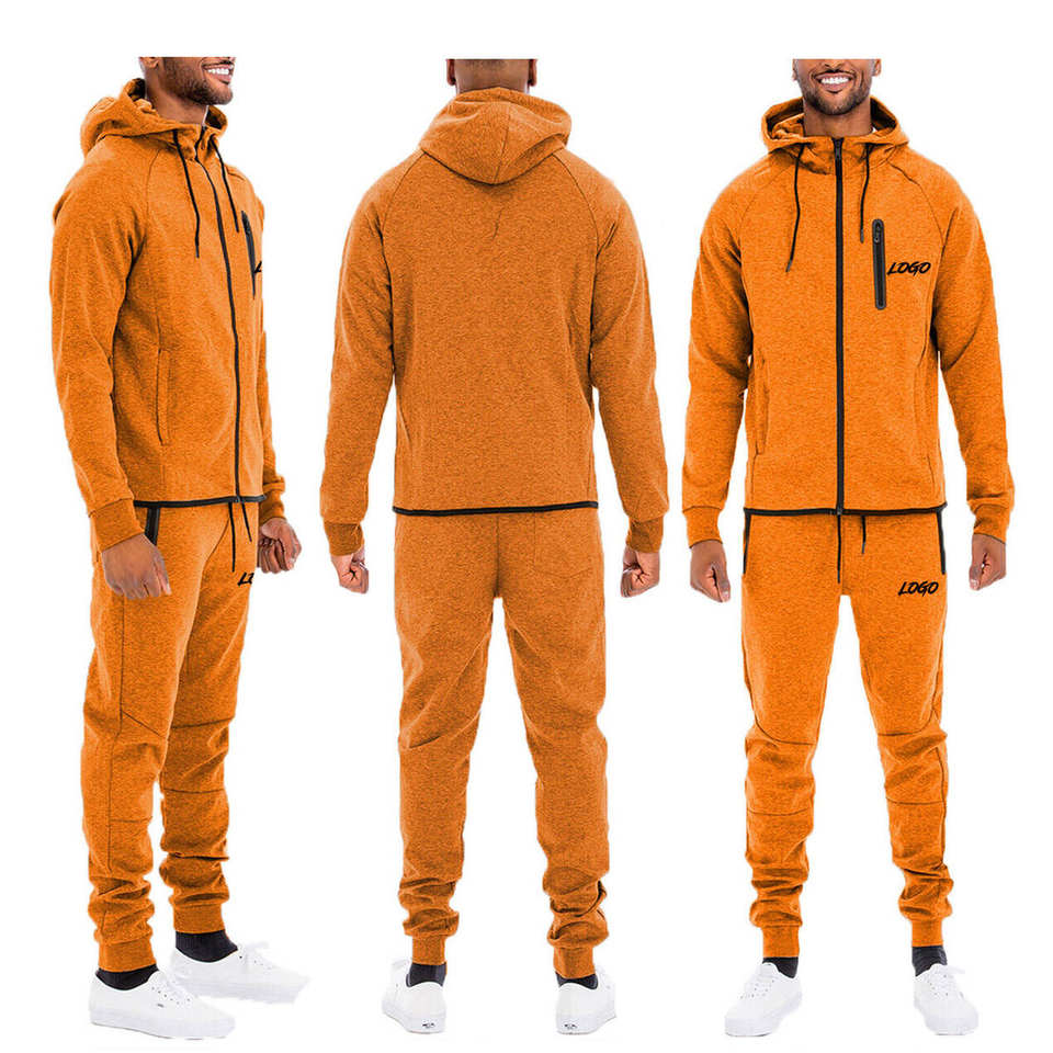 Winter Men Sweat Suit Tech Hoodie Sweatpants Sport Set Heavyweight Quick Dry Breathable Polyester/Cotton High Quality Tracksuit