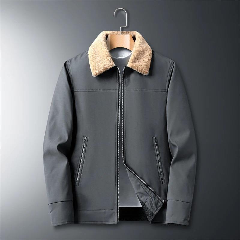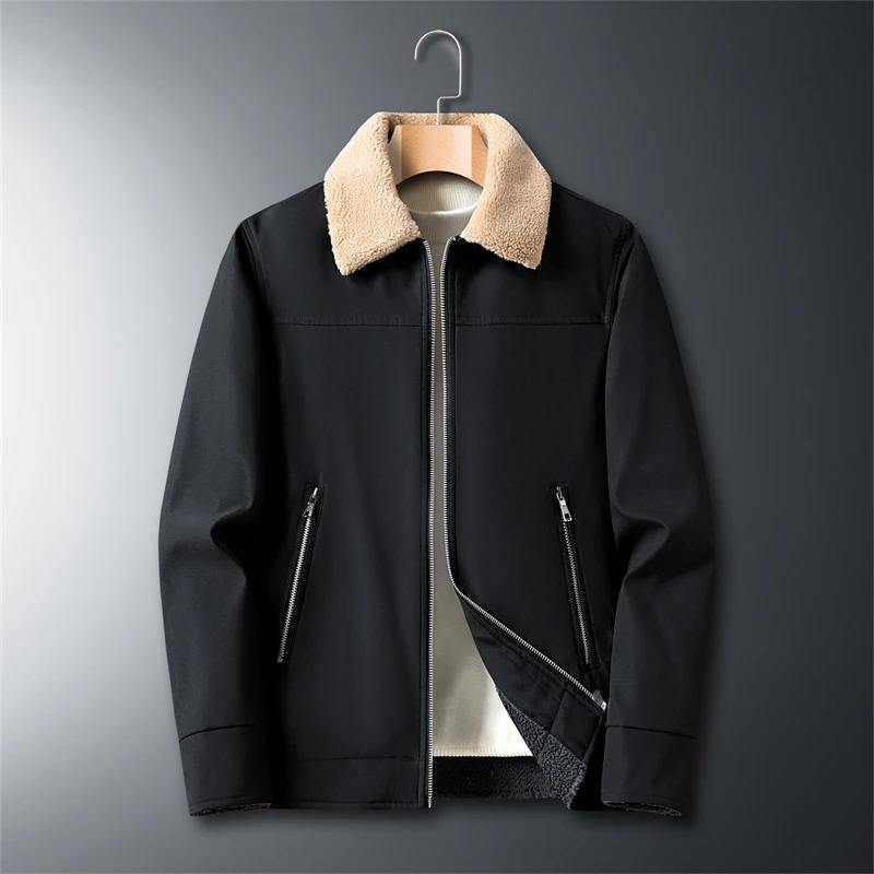 Winter Men Warm Fleece Windproof Casual Lapel Jacket Parka Coat Male Formal Business Windbreaker Outdoor Overcoat Jacket Top