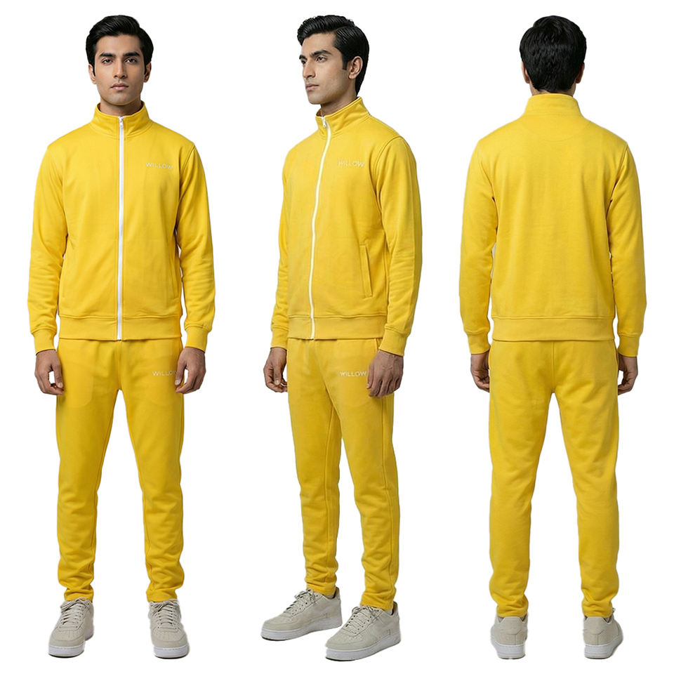 Winter Men's Bright Yellow Full Zip Jacket Jogger Pants Regular Fit Casual Streetwear Sportswear Custom Embroidery 100% Cotton