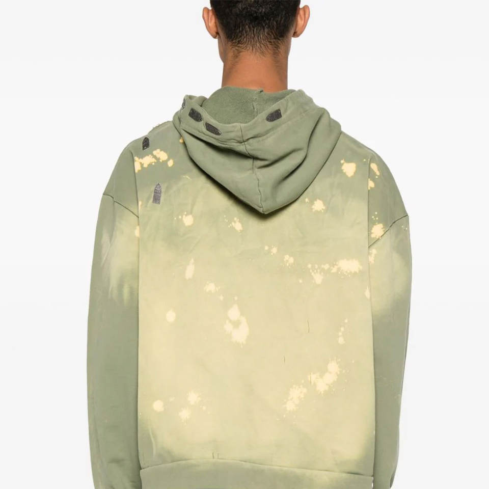 Winter Men's Garment-Washed Distressed Embroidered Hoodie with Applique Digital Printing Distressed Finish