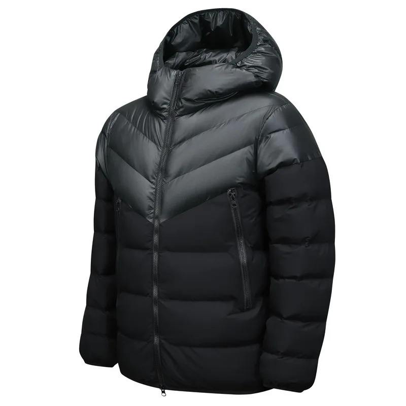 Winter Men's Puffer Jacket Hooded Trendy Ribbed Warm Cotton Coat For Man Color Block Male Parkas
