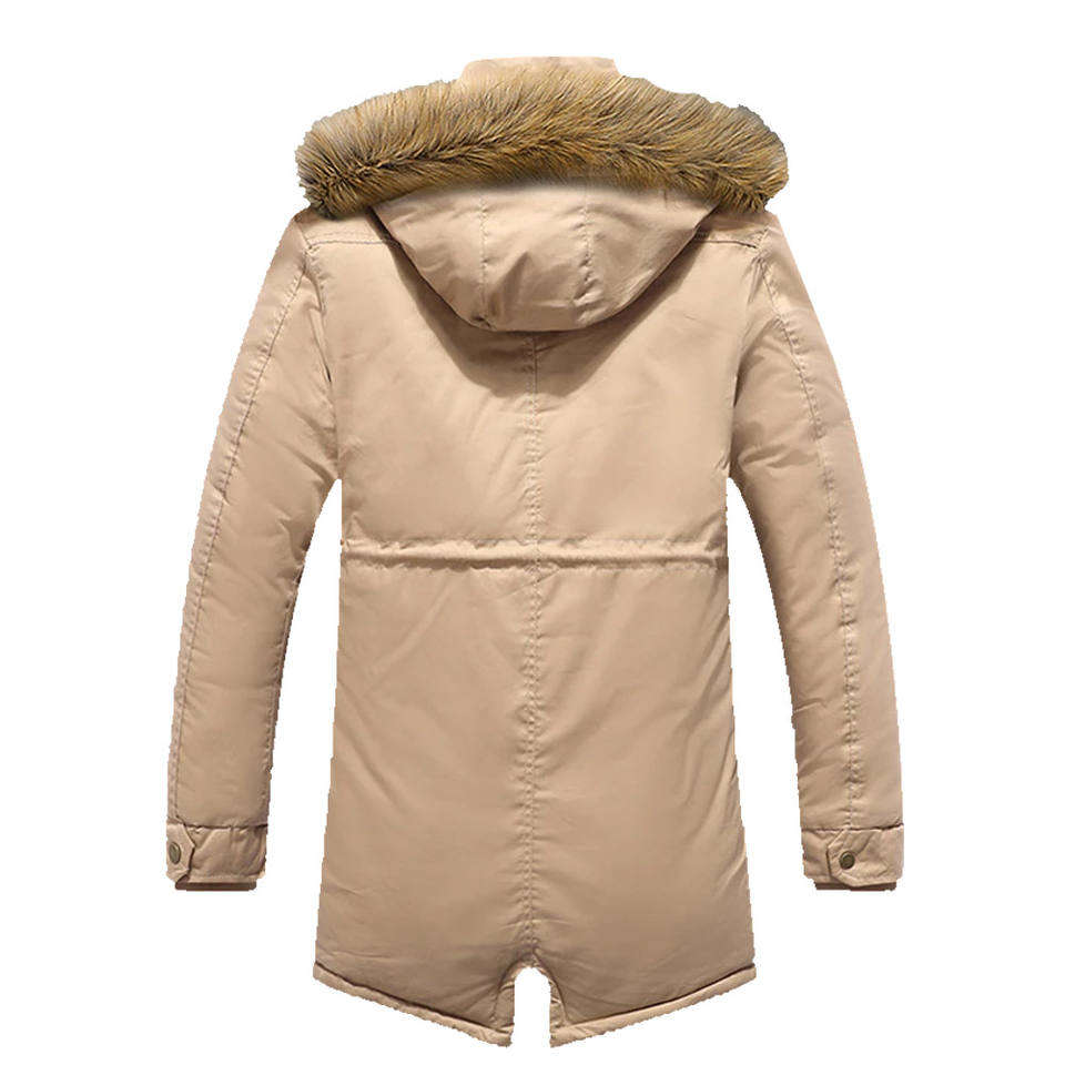 Winter Men's Thicken Long Fur Collar Jacket Windproof Hooded Warm Parka Multi-pockets Zipper Fleece Outdoor Overcoat Jacket