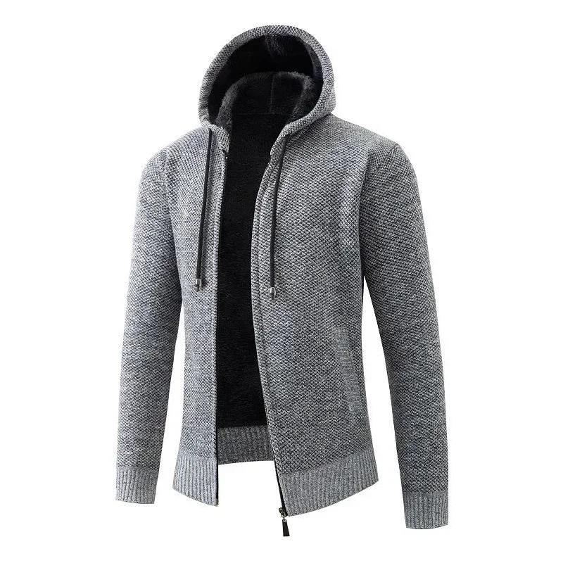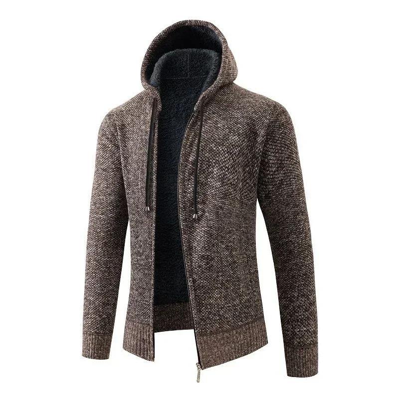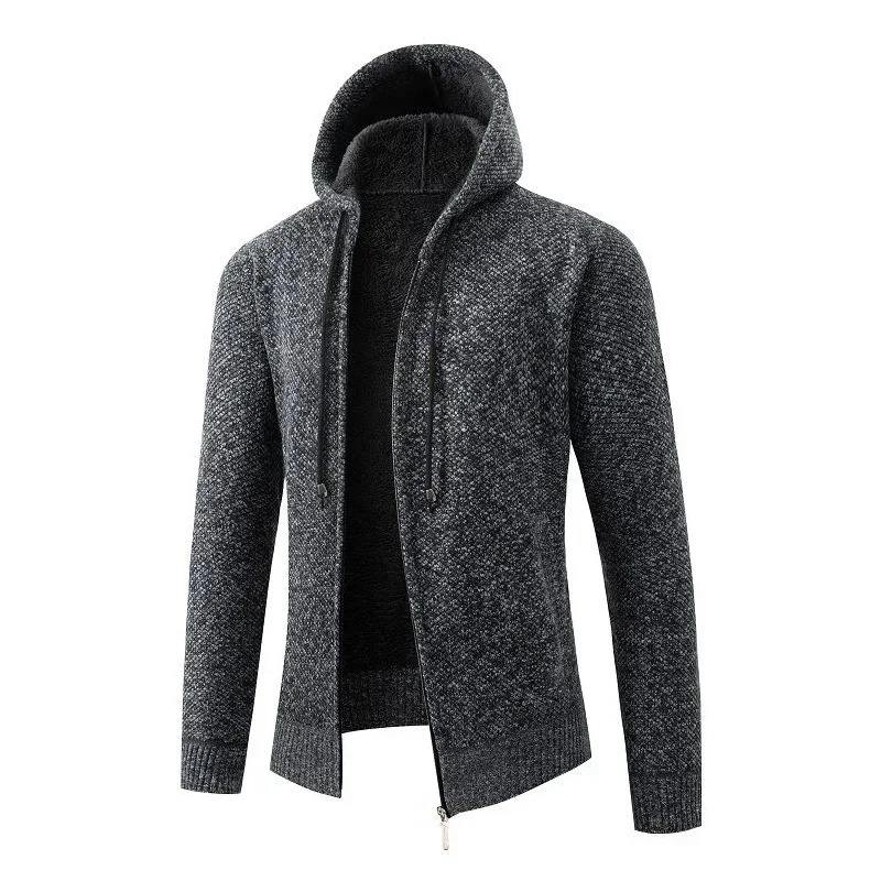 Winter Mens Hooded Cardigan Solid Color Thick Sweater Fleece Casual Jacket Zippered Fashion Mens Coat