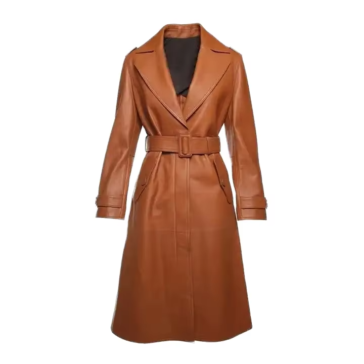 Winter New Arrival Timeless Black Faux Leather Long Trench Coat For Women With Tie Waist Belt Sleek Lines And Streamlined