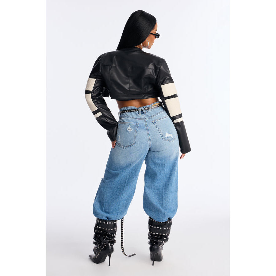 Winter New Arrivals Women Sexy Long Sleeve O Neck Single Button Crop Top Bomber Jacket PU Leather Casual Top