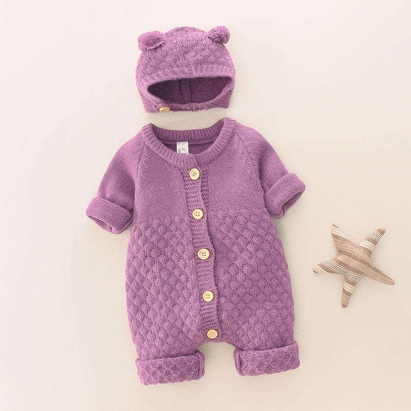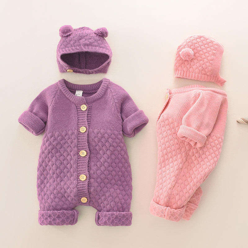 Winter New Born Cotton Clothes Solid Color Long Sleeves Knit Baby Rompers Infant Girls Jumpsuits Rompers Sweater