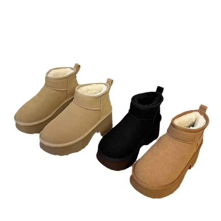 Winter New High-Heeled Women's Snow Boots Thick-Soled Genuine Leather Upper PU Outdoor Waterproof Warm Cotton shoes Ladies Boots