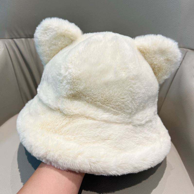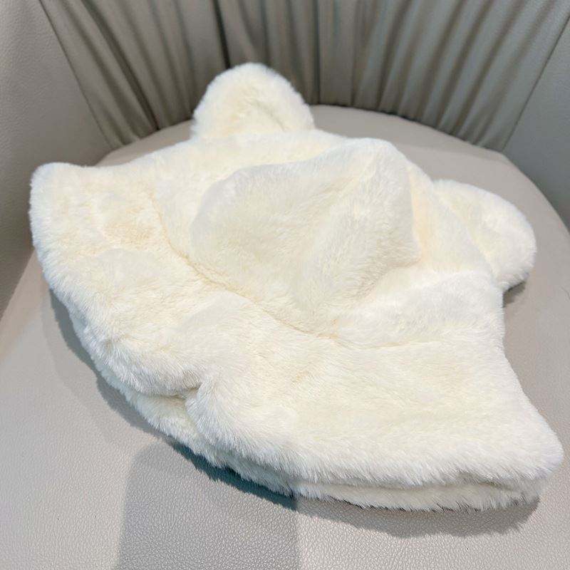 Item:Faux Fur Soft Cute Cat Ear Hairball Plush Fisherman Hat