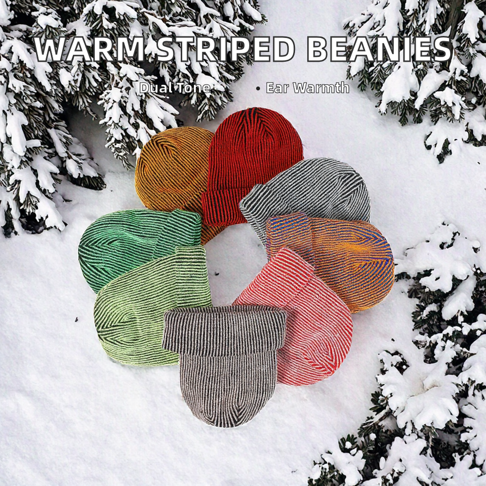 Winter Outdoor Striped Knit Hats Acrylic Riding Ear Protection Warm Curly Brimmed Beanies Two Toned Two-toned for Beach & Travel