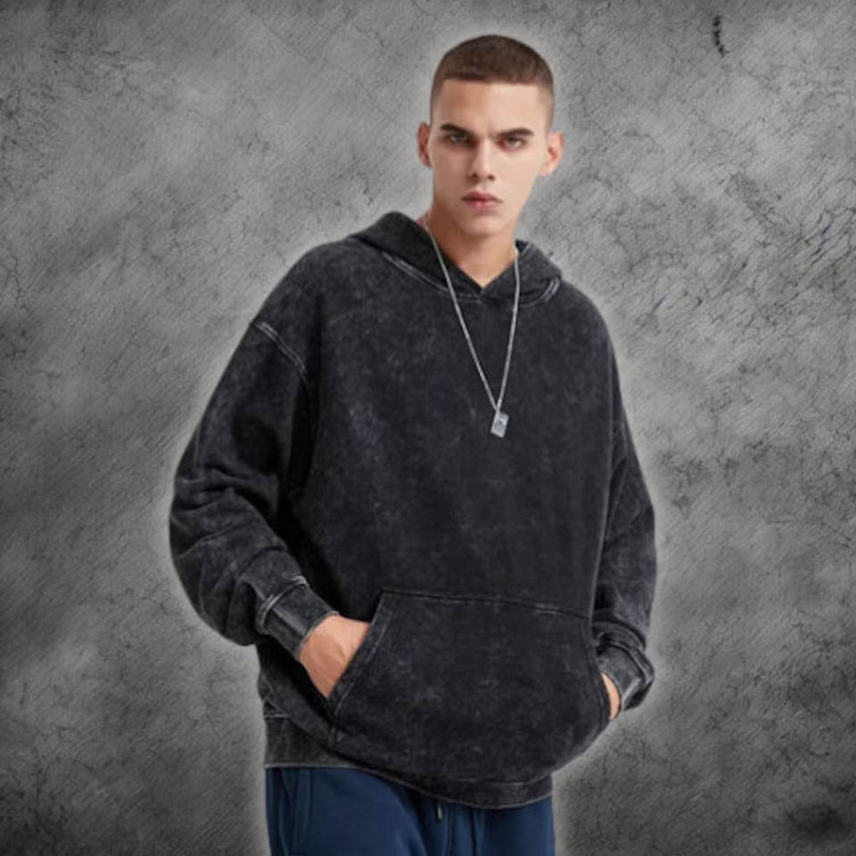 Winter Premium Heavy Fleece Hoodies Mens Vintage Black Acid Stone Wash Kangaroo Pocket Hoodies