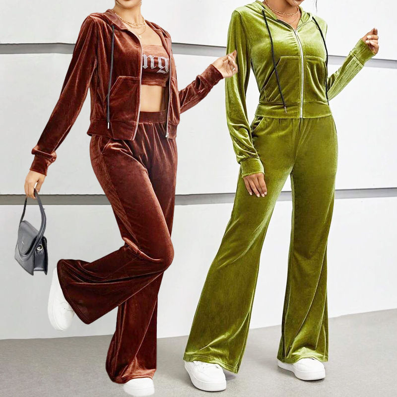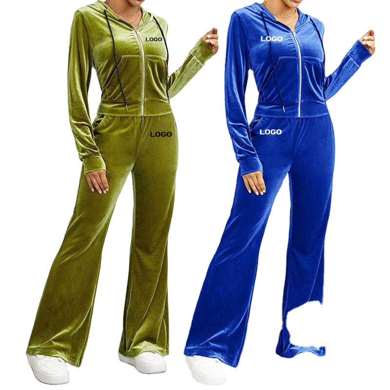 Winter Season Women Solid Color Long Sleeve Joggers Pants Two Piece Set Women Velour Velvet Tracksuit Sweat Suit