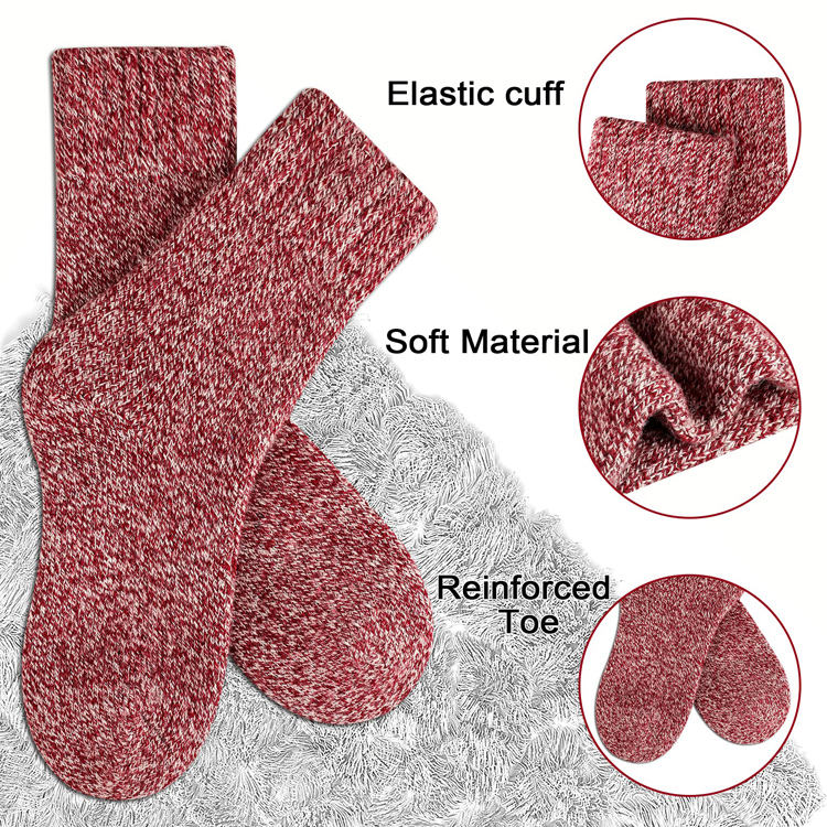 Winter Self Heating Wool Socks Warm Soft Full Cushion Crew Socks For Women Men Cold Weather