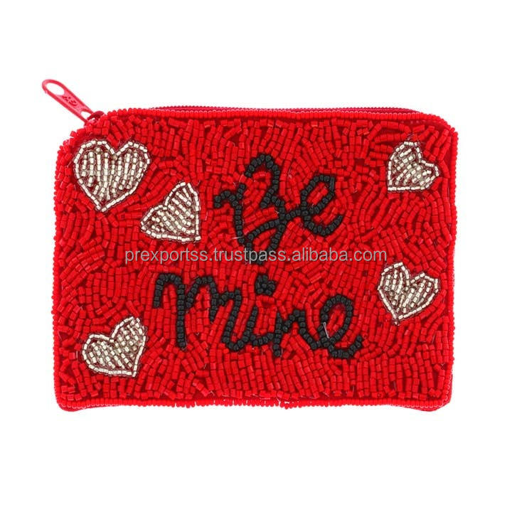 Winter Snowflake Beaded Coin Purse | Red Plaid Handmade Zipper Pouch | Holiday Christmas Mini Clutch Bag for Women Gifts