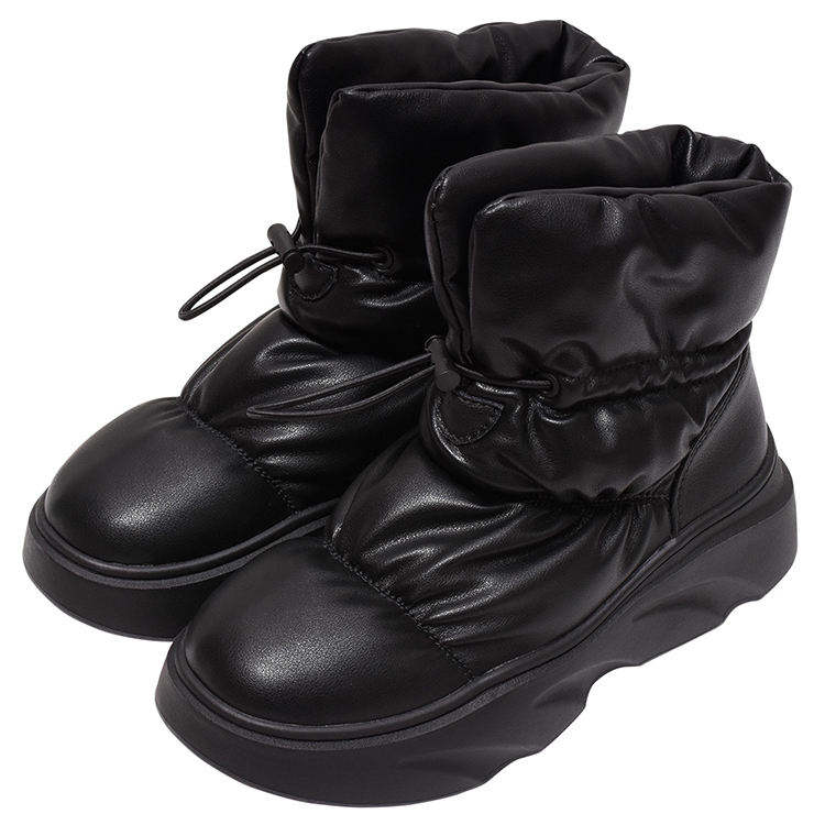 Winter Soft Puffy Drawstring Snow Boots with Arch Support PU Upper Chunky Heels and 6CM Platform Sole