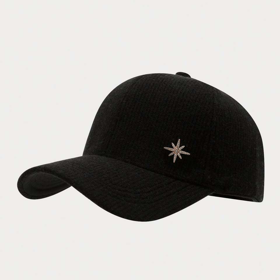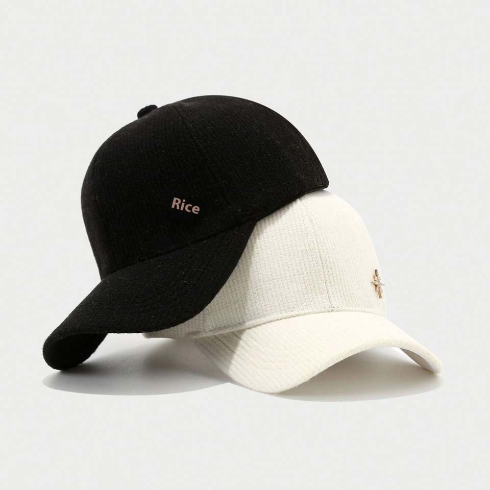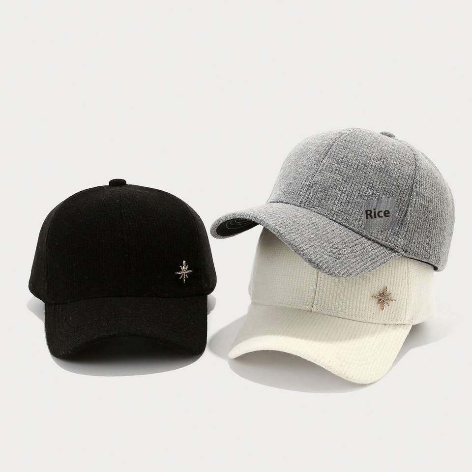 Winter Solid Color Knitted Baseball Cap Unisex Fashion Warm Casual Sports Hat Outdoor Fuzzy Hat with Snow Metal Design