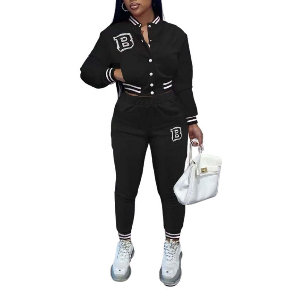 Winter Solid Short Varsity College Baseball Jacket Men Women Sweat Suit 2-Piece Pants Embroidered Letterman Crop Top Puff Coated