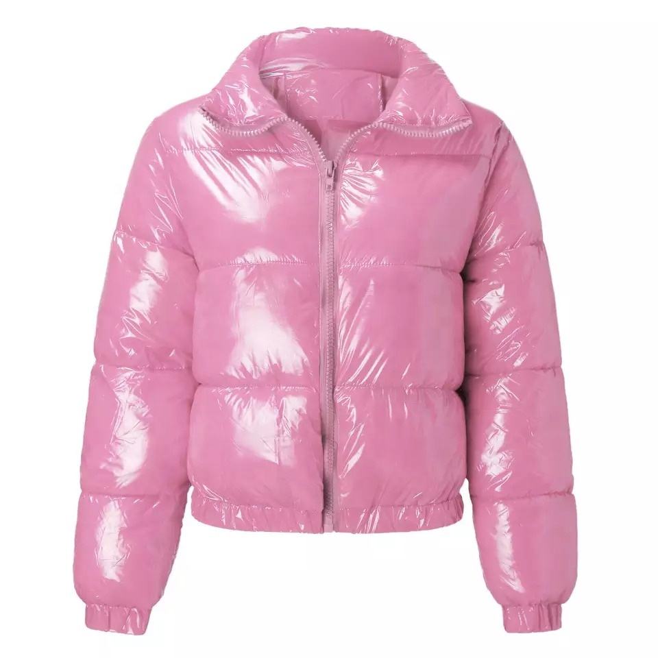 Winter Solid Women Crop Puffer Down Jacket Bomber Jacket Bubble Coat Women Long Sleeve Thick Zipper Bubble Puffer Jackets