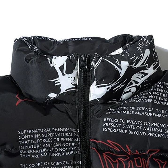 Winter Streetwear Fashion Full Letter Printed Y2K Oversized Down Coat for Men Vintage Clothing Hip Hop Gothic Warm Puffer Jacket