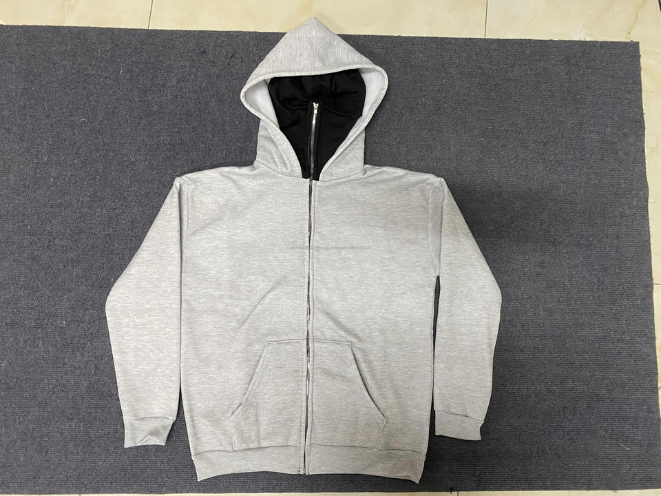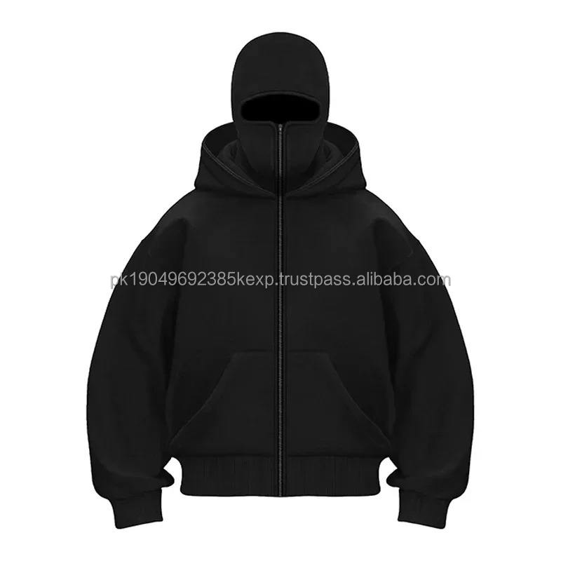 Winter Streetwear Men's 6XL Fleece Pullover Sweatshirt Soild Color Ninja Hoodie Integrated Balaclava Hip Hop Style Splicing Tops