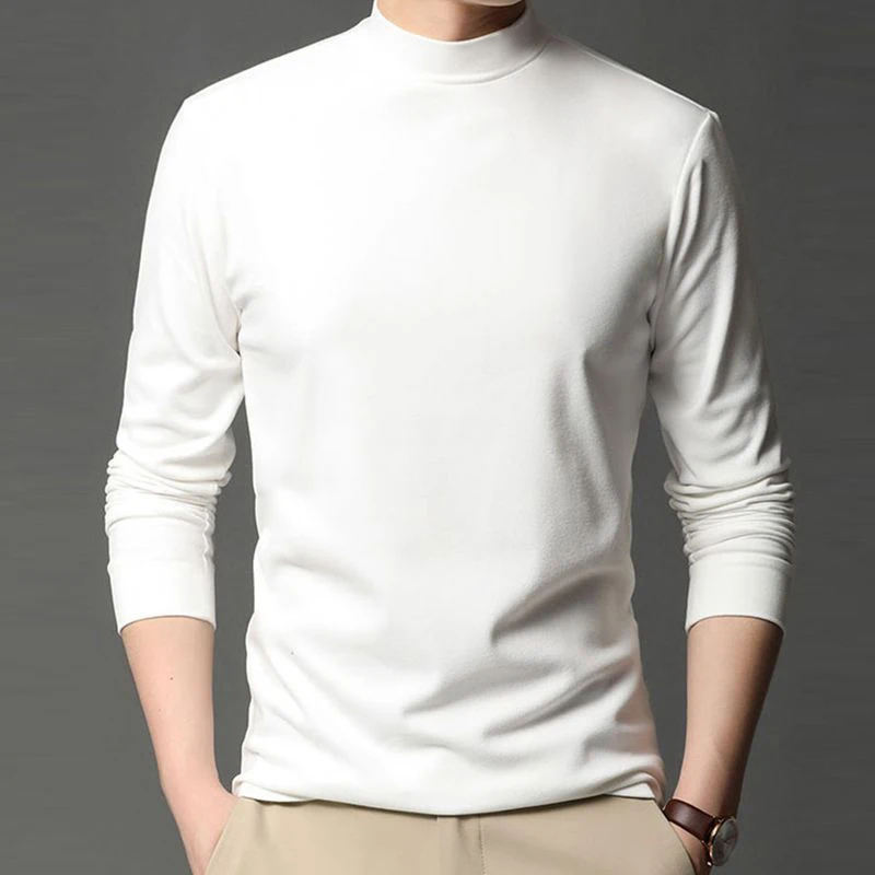Winter Thick Warm Turtleneck Tshirt Men's T-shirts Tops Custom Slim Undershirt Men Long Sleeve T Shirt