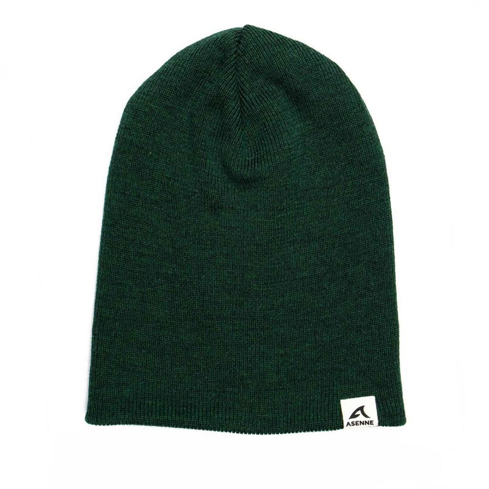 Winter Toque Knitted Hats Custom Green Beanie With Woven Label