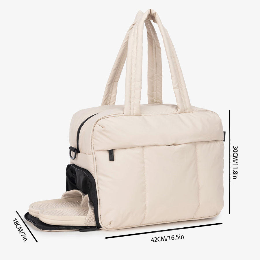 Winter Travel Luggage Puffer Oxford Durable Printed Cotton Padded Tote Bag with Shoe Compartment