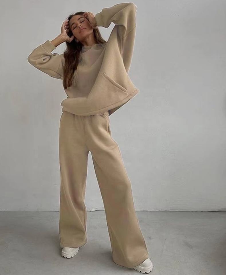 Winter Two Piece Wide Leg Sweatpants Hoodie Set Women High Quality Custom Fleece Washed Button Pattern Vintage Style 100% Cotton