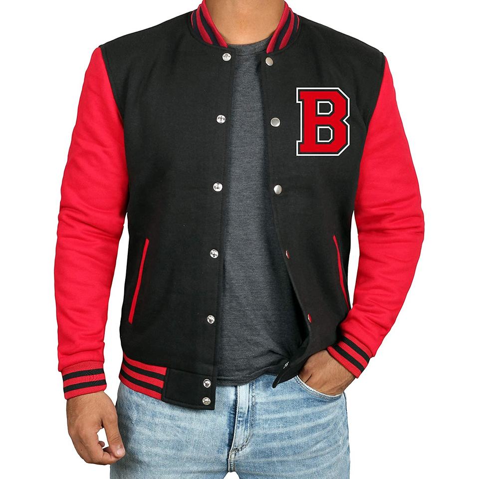 Winter Men's Varsity Bomber Jackets Red Black and Yellow Embroidered Baseball Letterman Stand Collar Front Logo