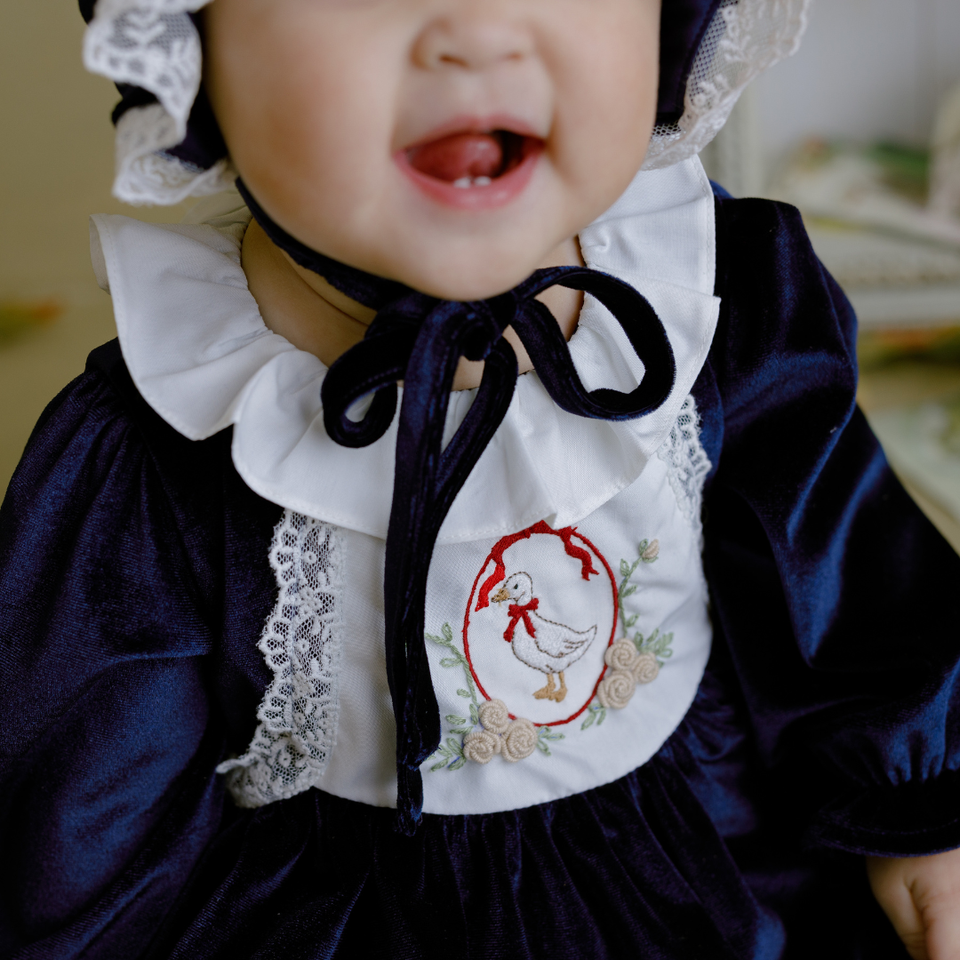 Winter Velvet Set Onesies Bonnet Handmade Newborn Set Romper Bodysuit Hand Embroidery Cartoon Baby Girls Clothing-Mia Jumpsuits