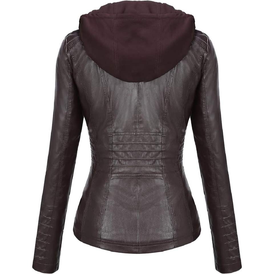 Winter Warm Faux Leather Sheepskin Coat Women Large Real Wool Fur Collar Zipper Slim Biker Pu Leather Short Jacket