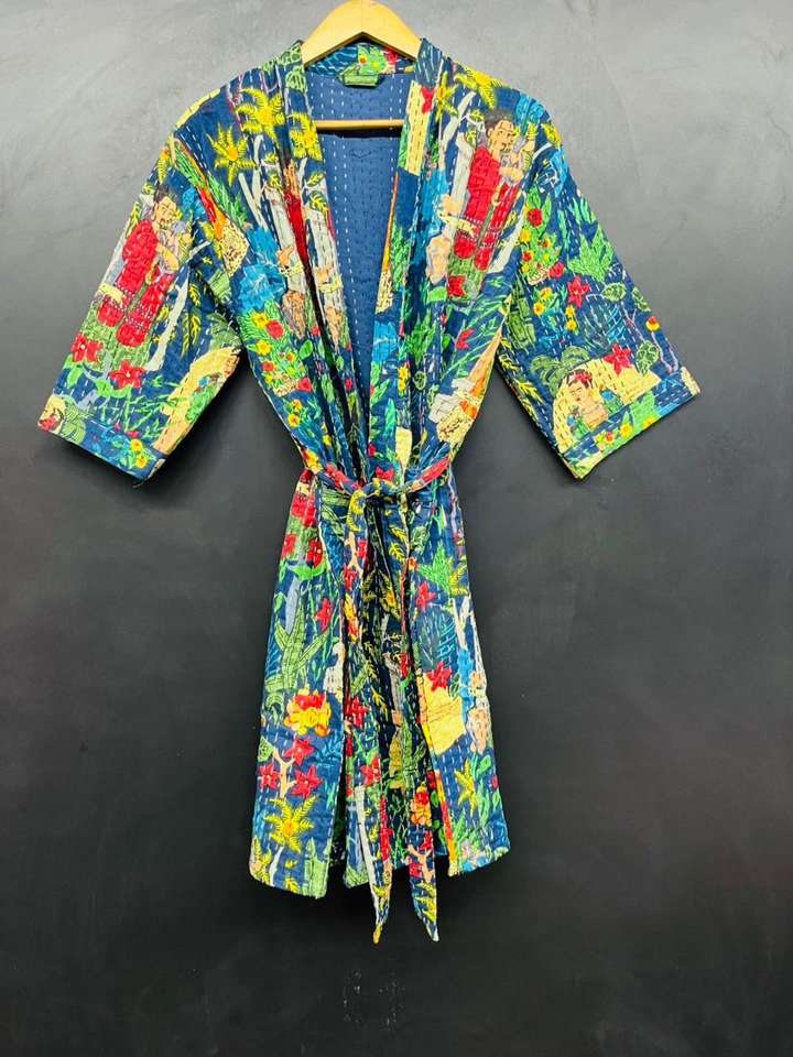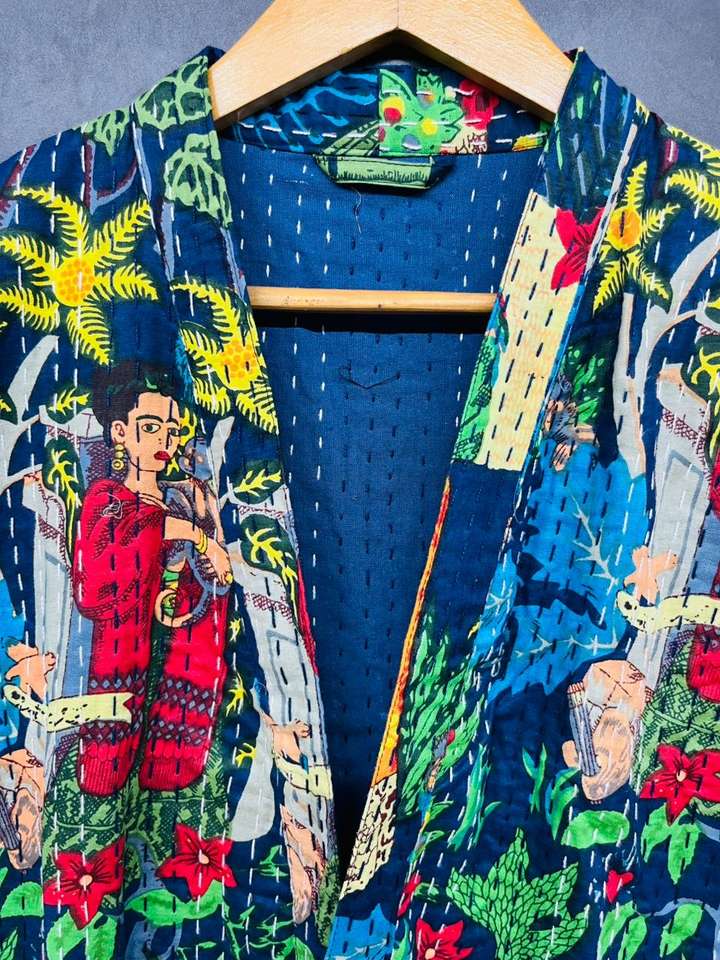 Winter Wear Quilted Kantha Stripe Eco-Friendly Handmade Indian Women's Cotton Jacket